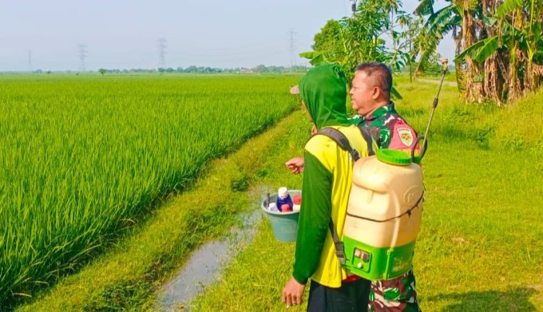 Babinsa Koramil 1605 Sukagumiwang Monitoring dan Dampingi Petani di Desa Jambe