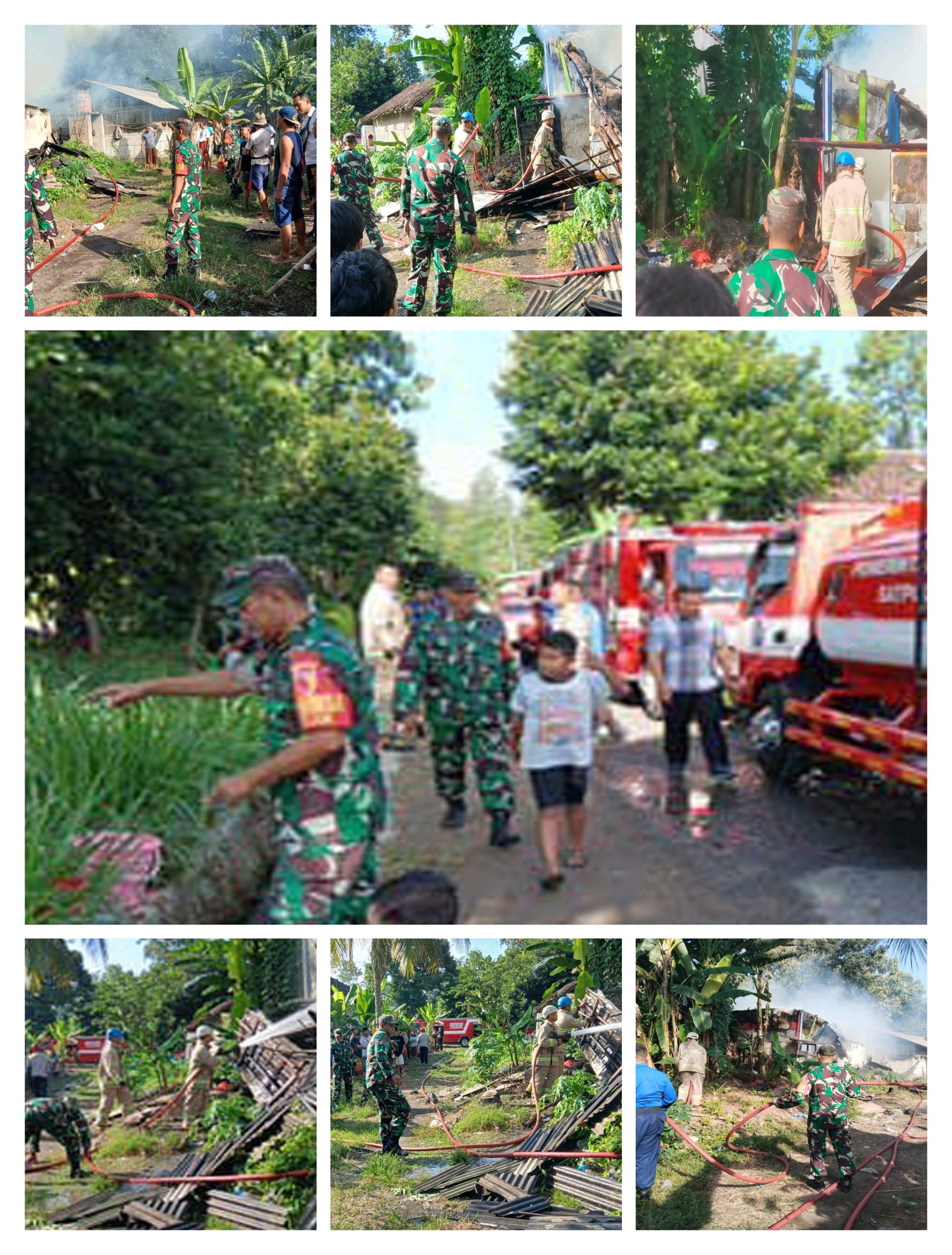 Babinsa Kelurahan Garum Koramil 0808/02 Garum Kodim 0808/Blitar Serda Edy Sopyan, bersama unsur Polsek Garum, perangkat kelurahan dan masyarakat sekitar bahu membahu membantu proses pemadaman bersama Tim Pemadam Kebakaran Kabupaten Blitar.