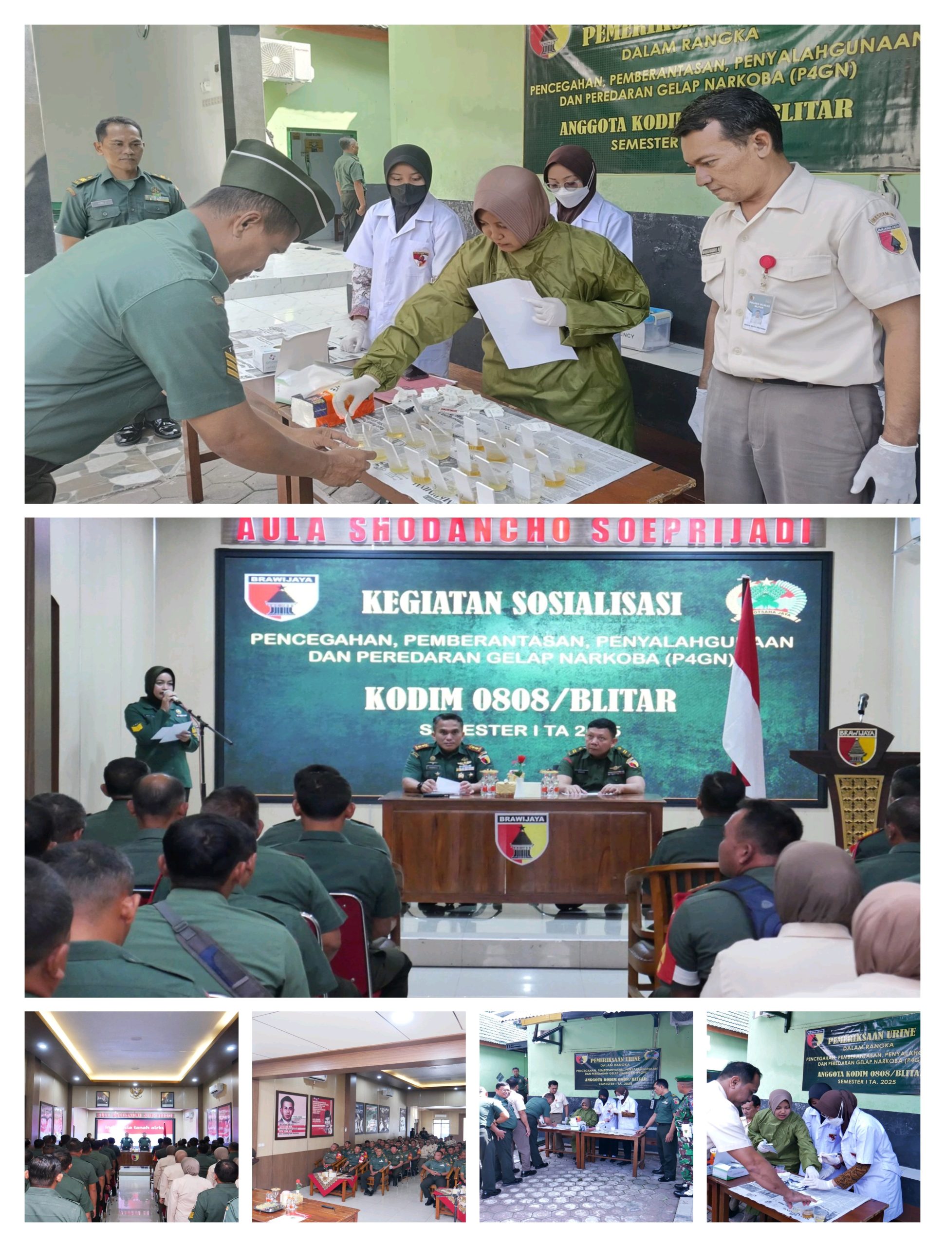 Kegiatan ditutup dengan sesi pemeriksaan urine kepada 38 personel TNI dan ASN Kodim 0808/Blitar sebagai bentuk nyata komitmen dan upaya pencegahan dini terhadap penyalahgunaan narkoba di lingkungan satuan.