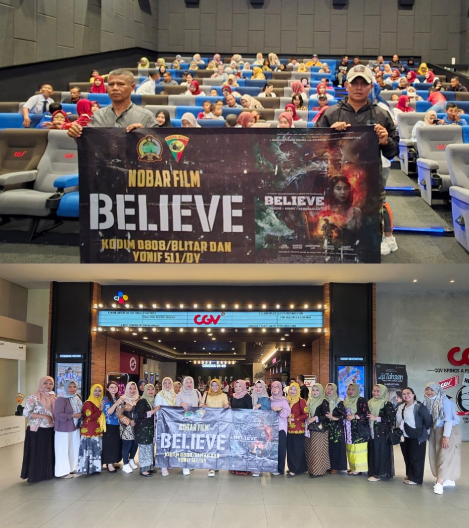 Blitar – Mediatnipolri.com, Dalam rangka menanamkan nilai-nilai patriotisme, pengabdian dan kecintaan terhadap Tanah Air, Kodim 0808/Blitar menggelar kegiatan nonton bareng (nobar) film “Believe” bersama anggota Yonif 511/DY, Persit Kartika Chandra Kirana Cabang XXII dan guru-guru TK Kartika Jaya. Acara ini berlangsung di CVG Cinemas Blitar Town Square (BLITOS) Jl. Merdeka Kelurahan Kepanjenlor Kecamatan Kepanjenkidul Kota Blitar, Senin (4/8/2025).