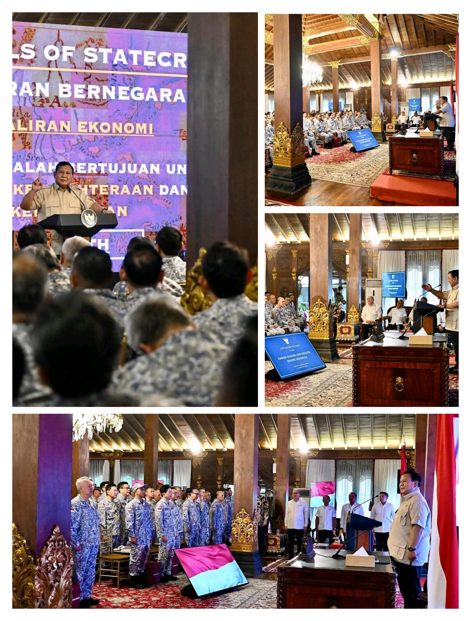 Presiden Prabowo Subianto memberikan pengarahan penting kepada sekitar 230 anggota Kamar Dagang dan Industri (KADIN) Indonesia di kediaman pribadinya di Hambalang, Kabupaten Bogor, Jawa Barat, pada Jumat, 8 Agustus 2025. Dalam kesempatan ini, Presiden Prabowo tidak hanya memberikan pengarahan tetapi juga melepas keberangkatan anggota KADIN menuju kegiatan retreat di Magelang, Jawa Tengah. Minggu, 10 Agustus 2025.