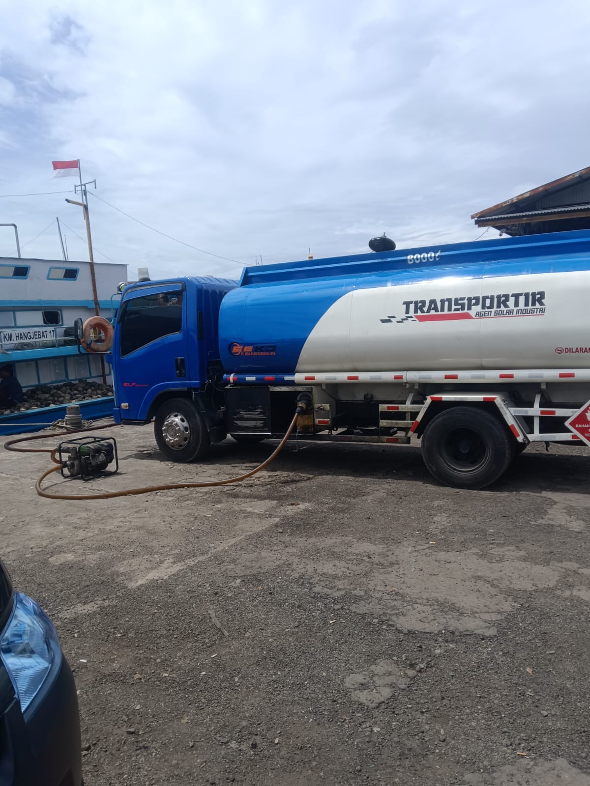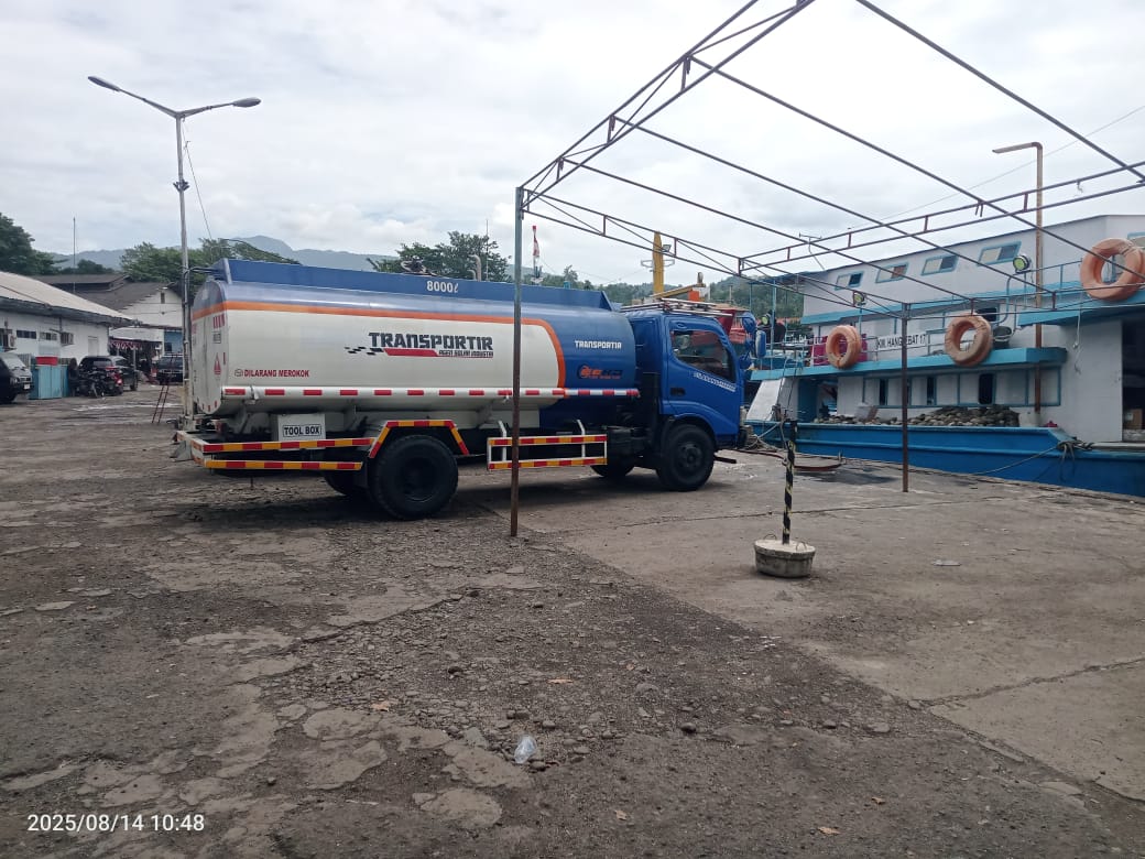 Terpantau oleh awak media. pada hari kamis 14 Agustus 2025 siang, PT Ezra Ezra Karunia jaya, melakukan kegiatan pengisian BBM bio solar bersubsidi ke kapal ikan KM, Hang, Ebat 17. di dermaga prindo di PT Perikani.