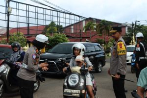 Selain membagikan helm, petugas juga memberikan brosur imbauan keselamatan serta mengingatkan para pengendara agar selalu mematuhi aturan berlalu lintas selama Ops Zebra Kapuas 2025 berlangsung.