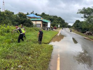 Satuan Lalu Lintas (Satlantas) Polres Melawi melakukan aksi cepat dengan membersihkan dan membuat saluran air di sejumlah ruas jalan yang kerap mengalami genangan. Selasa (09/12). Langkah ini dilakukan sebagai upaya pencegahan potensi terjadinya kecelakaan lalu lintas (laka lantas), terutama saat curah hujan meningkat.