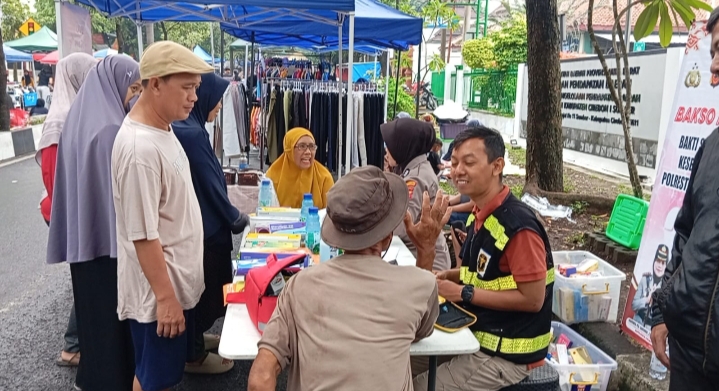 Polresta Cirebon melaksanakan kegiatan Bakti Sosial Kesehatan Pengobatan Gratis, Minggu (13/12/2025). Kegiatan tersebut dilaksanakan di kawasan Car free day (CFD) Kecamatan Sumber, Kabupaten Cirebon.