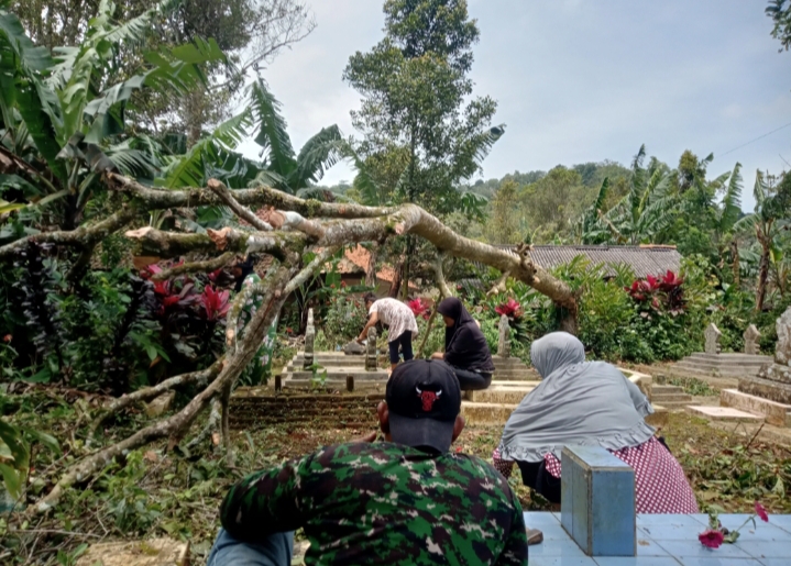 Beberapa keluarga yang makam keluarganya tertutup pohon tumbang langsung bergerak cepat melakukan pembersihan. Dengan peralatan seadanya, warga bergotong royong merapikan ranting-ranting dan bagian pohon yang menimpa area makam, demi menjaga kebersihan serta menghormati tempat peristirahatan terakhir para leluhur.