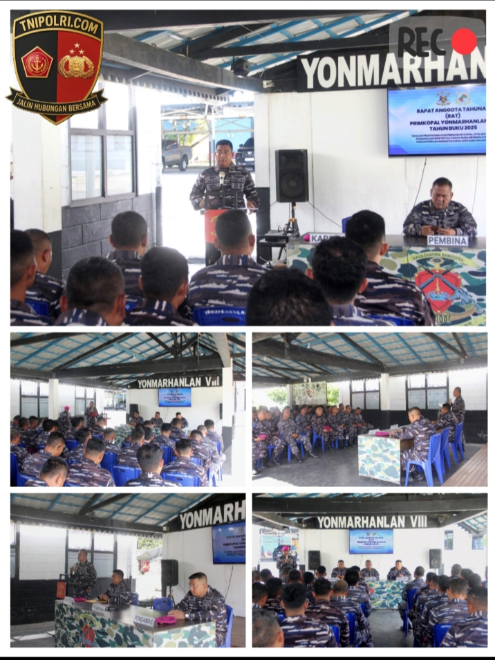 Bitung, Sulut | MediaTNI-Polru.com — sumber : dari pasi Intel Maririnir – Kota Bitung, Sulawesi Utara, 27 Februari 2026 – Yonmarhanlan VIII Bitung menggelar Rapat Anggota Tahunan (RAT) PRIMKOPAL Yonmarhanlan VIII Tahun Buku 2025 di Tribun Yonmarhanlan VIII, Kel. Bitung Tengah, Kec. Maesa, Kota Bitung. Kegiatan ini diikuti oleh seluruh personel Yonmarhanlan VIII dan dipimpin oleh Lettu Mar Agus Susiawan selaku Kaprimkopal.